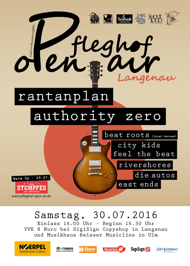 Wir konnten sieben Bands nach Langenau locken und sind davon überzeugt, durch eine gute Mischung aus lokalen, nationalen und internationalen Bands verschiedener Musikrichtungen (Punkrock, Ska, Reggae, Indie) ein breites Publikum von jung bis alt erreichen zu können.